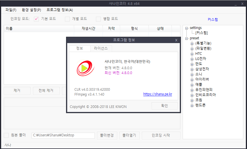 공식 사이트를 이용하시면 최신버전 샤나인코더 다운로드나 기타 프리셋등을 구할 수 도 있고 간략하게 정리된 사용설명서등도 확인해볼 수 있습니다. 아무튼 홈페이지에 들어가보시면 많은 정보를 확인해볼 수 있으니 들어가보세요!