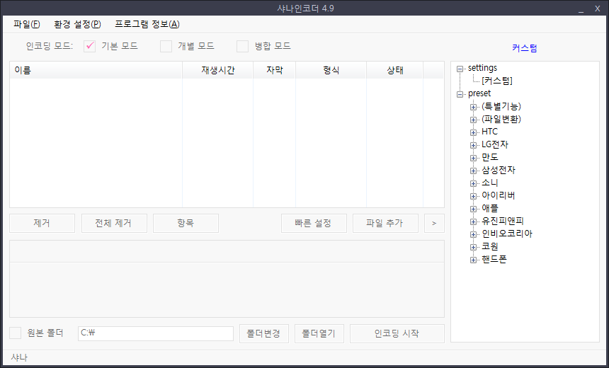 뭐 워낙 깔끔하고 깨끗한 프로그램이라 그런지 설치를 진행하는 과정중에 제휴서비스나 프로그램 설치는 보이지 않더군요. 구성요소 선택에서는 프리셋밖에 보이지 않을텐데요. 여기서말하는 프리셋은 변환 설정을 미리 저장해둔 것이라고 생각하시면 됩니다. 이를테면 탬플릿과 비슷하죠.