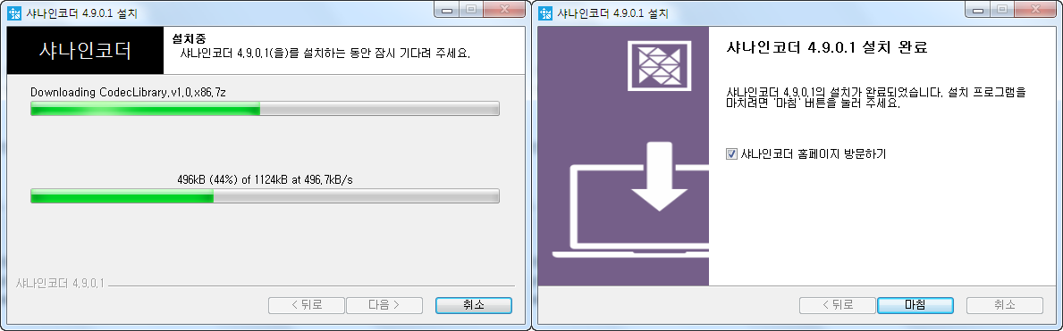 모든 설치과정이 완료되고나면 마침 버튼을 이용해서 창을 닫아주시면 됩니다. 이제부터 샤나인코더 프로그램을 사용하셔서 원하는 변환(인코딩)작업을 진행하시면 되는데요. 잘 모르는 내용이 있거나 오류, 기타 정보가 필요하신분은 공식 홈페이지에 접속해보시기 바랍니다.