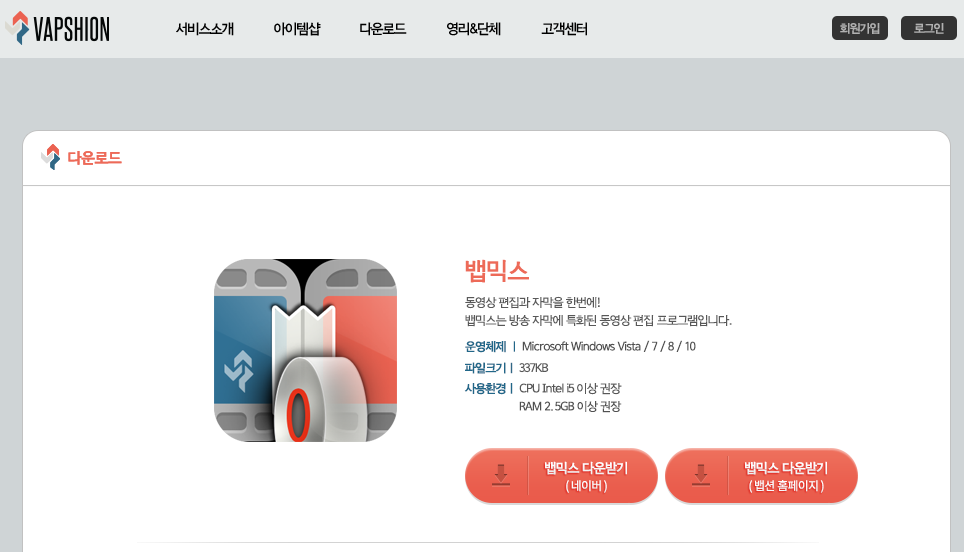 설치파일은 작은용량이라서 금새 받을 수 있습니다. 보통 뱁믹스 다운로드 후 필요한 것이 설치과정인데요. 프로그램을 사용하기 위해서는 어도비 에어가 설치되어야 합니다. 이점 확인하시고 설치를 진행해주시기 바랍니다.