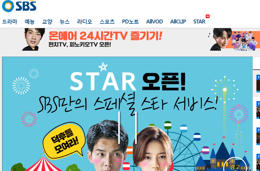 마지막은 sbs입니다. 자주 이용하시는 네이버, 다음, 구글등에서 홈페이지 주소를 확인하시고 온에어서비스(OnAir)를 이용하시면 실시간 tv보기가 가능하지만 이곳도 회원가입은 필수 입니다. 이곳도 어플을 추천드리는데요. VOD 7만편이 무료로 제공된다고 하니 안쓸 이유가 없겠죠.