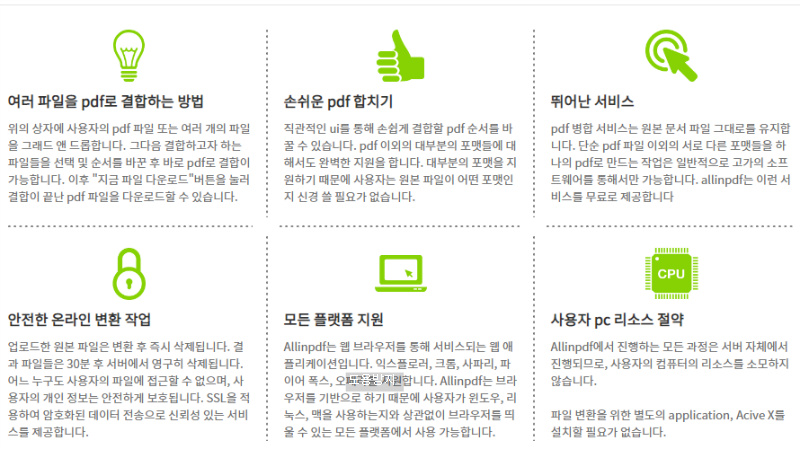 다시 말씀드리지만 pdf파일 합치기는 이 홈페이지에서 제공하는 기능중 일부에 불과 합니다. 왜 이곳을 이렇게 칭찬하는지는 사용해보시면 깨닫게 되는데요. 작업을 진행해도 우리 컴퓨터 리소스는 1도 사용하지 않습니다. 신기하죠? 홈페이지 URL은 검색사이트를 이용해서 찾아주세요.