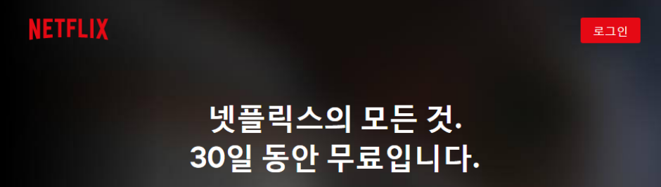 검색을 통해서 넷플릭스 홈페이지 주소를 찾아서 사이트에 들어갔습니다. 화면 중앙에 써있는 문구가 가장 눈에 들어오는데요. 유료 서비스 이지만 체험을 통해서 경험해 볼수 있도록 서비스 해주는 군요.