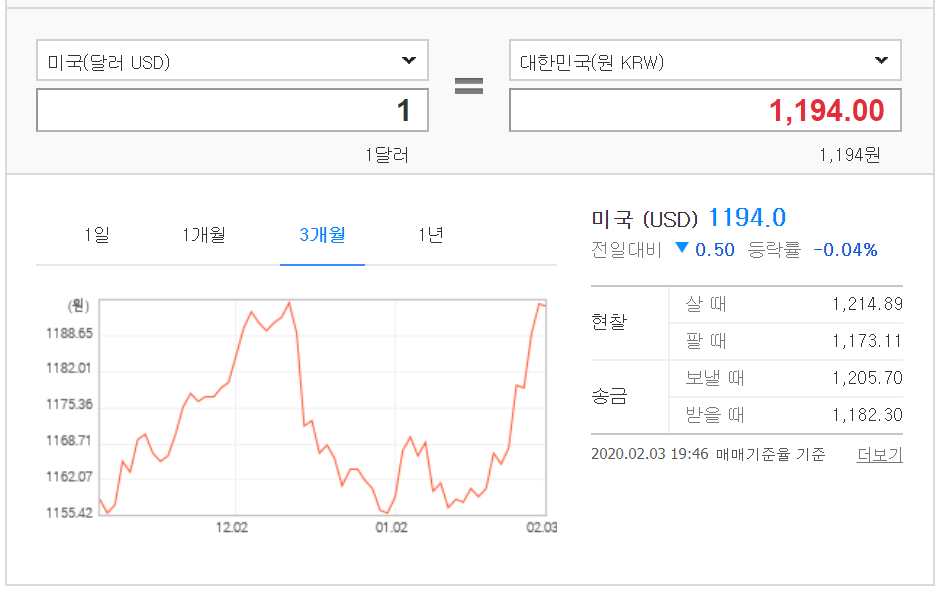 작년 12월에 치솟았던 환율을 기억하시나요? 엄청난 기세로 올라갔던 그것은 1월초순에 1150원대로 떨어졋습니다. 이전에 1200원을 넘었던것을 기억하면 엄청난 하락이죠. 아무튼 그래서 2월달에는 다시 떨어지겠구나 했더니 중국발 바이러스의 등장으로 전세계에 충격에 휩쌓였죠.