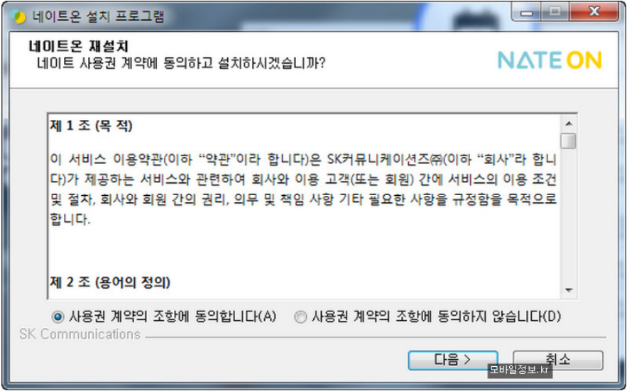 우선 네이트온을 사용하기 위해선 인스톨과정을 거쳐야합니다. 물론 몇몇 프로그램들은 무설치 포터블 버전 다운로드를 제공하기도해서 이 과정을 건너뛸수도 있기는 하지만 우리가 이번에는 설치하는 이건 설치형이죠.