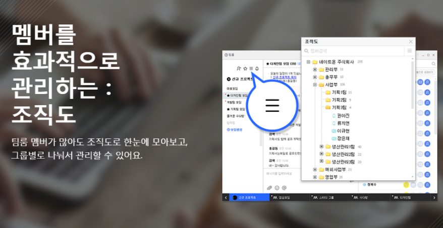 여러 사람이 모여서 활동하는 사회에서 조직간,그룹안에서 정보를 함께 공유하는데 불편하지 않도록 여러가지 기능을 추해주었습니다. 당연히 회사와 같이 서열이 존재하는 곳을 위해서 조직도를 관리할 수 있도록 기능을 제공하고 있죠.