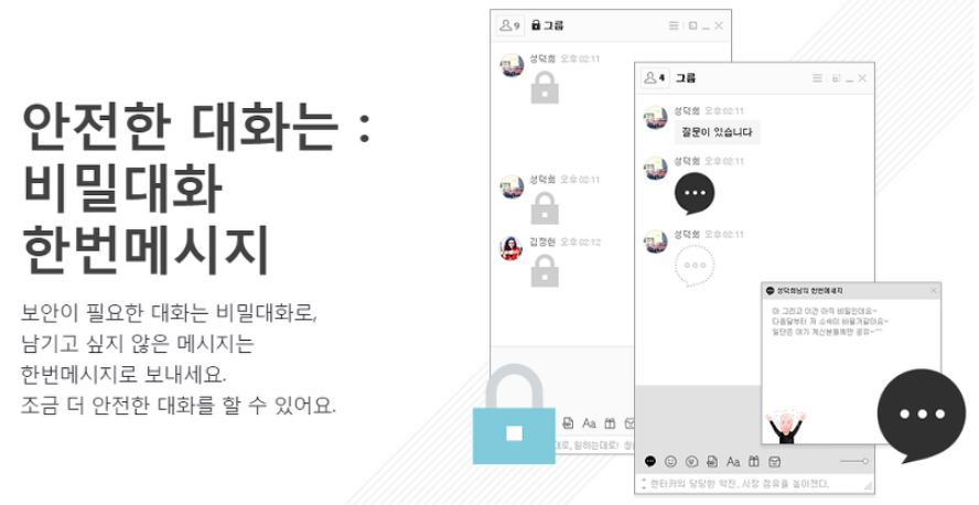 재밌는 것은 왜 아직도 네이트온을 다운로드 받는가 하는 것에 대한 의문을 사이트에서 확인할 수 있다는 것이죠. 이전과는 다른 특징이 눈에 보이는데요. 예전엔 없던것으로 기억되는 기능이 추가되어 있더군요. 예를 들면 안전한 대화기능으로 한번만 확인가능한 메시지를 이제 보낼수도 있죠.