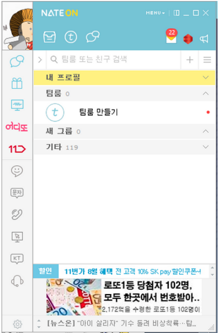 이런것이 네이트온을 다운로드 받는 이유 일까요? 아닙니다 시대의 변화를 경험 할 수 있는 팀룸이라는 기능이 강화되어 있죠. 휴대폰이 있어서 굳이 PC용 메신저가 아니더라도 언제어디서나 채팅을 사용할 수 있게되었죠. 심지어 화장실에서도 사용할 정도이니 거의 모든상황에서 사용된다는 것이겠죠.