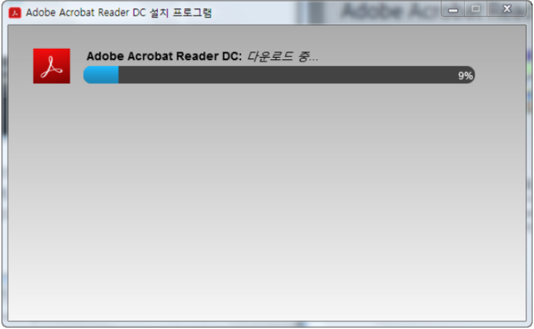 그렇게 진행되는 게이지를 바라보시면서 잠시만 기다리시면 추가적인 데이터를 다운로드 받게되고 이제 진짜 어도비 리더의 설치가 진행됩니다. 그중간 과정은 우리가 참여 해야하는 설정은 없어보이죠. 그냥 기다려주시면 되겠습니다.