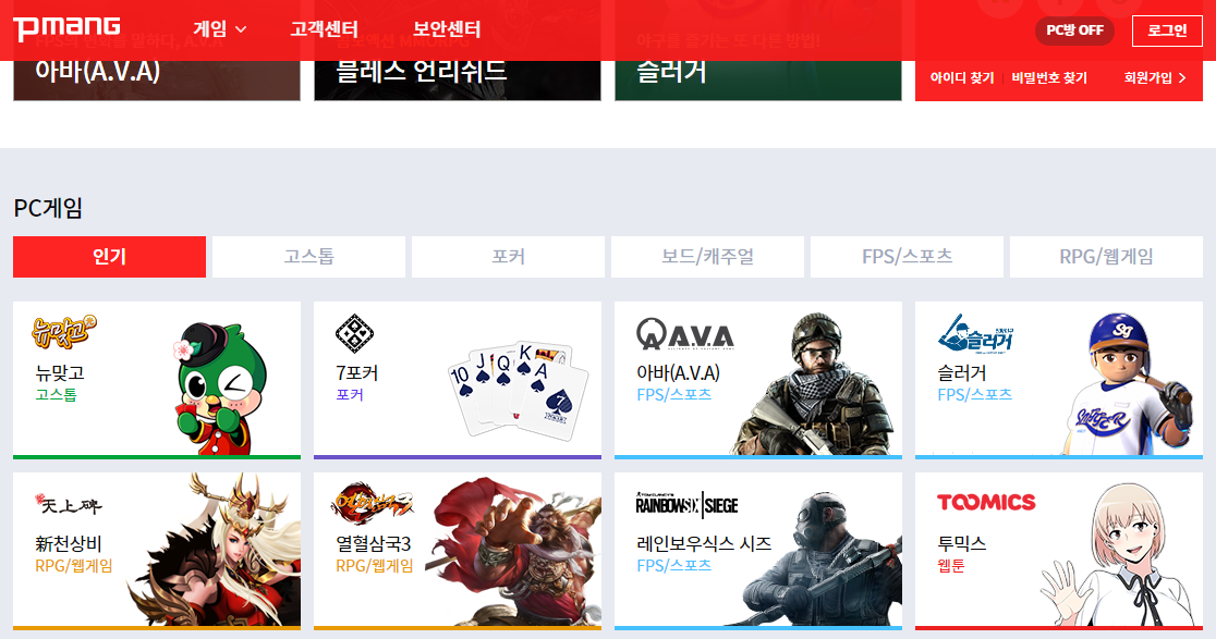 이런식으로 간단하게 검색해보시면 아시겠지만 현재 pmang 공식 홈페이지는 정상적으로 운영되어지고 잇는데요. 거기에서 pc용 게임을 보시면 우리가 이야기 하는 다양한 것들이 모여있습니다. 이를 통해서 간단하게 찾을수 있어요.
