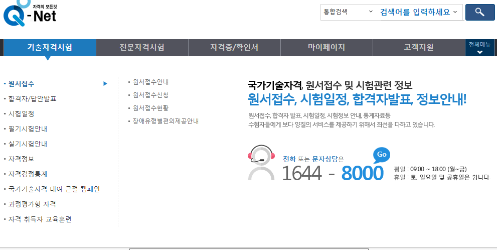 아무래도 국가에서 치루는 수많은 자격검정을 진행하다보니 다양한 방법으로 고객상담을 하고 있는데요. 평일 기준으로 오전9시부터 오후 6시까지 1644-8000번에서 전화 또는 문자로 문의해보실수 있으니 이용중에 궁금하신 사항이 있다면 직접 확인해보시면 됩니다.