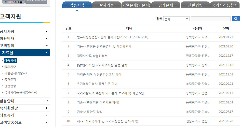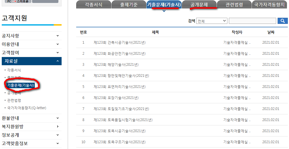 *한국산업인력공단 홈페이지에서 기출문제 찾기