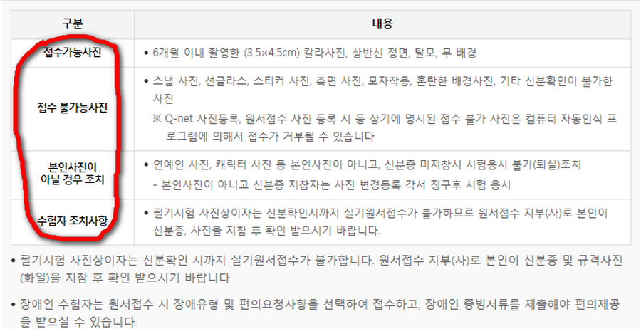 사진 같은 경우에 실수를 하기도 하는데여. 6개월 이내에 찍은 것으로 3.5*4.5cm 컬러사진이어야 합니다. 괜히 옛날에 찍은거 가지고 갔다가 시험장에서 상이하다고 판정되면 응시도 못하고 쫒겨난다고 하니 조심하기 바랍니다.