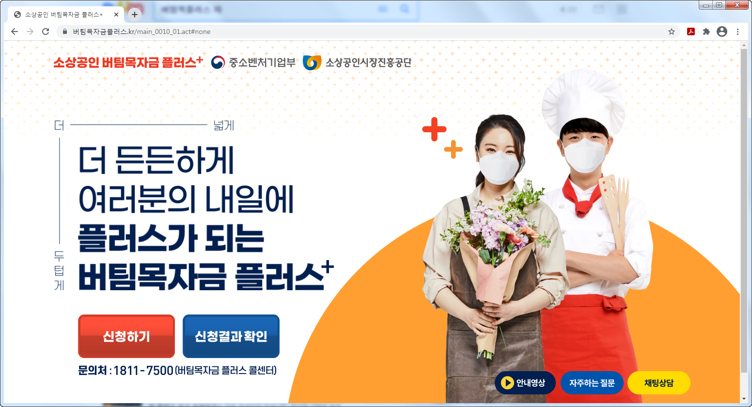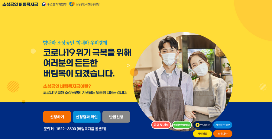 소상공인 버팀목자금 플러스 홈페이지