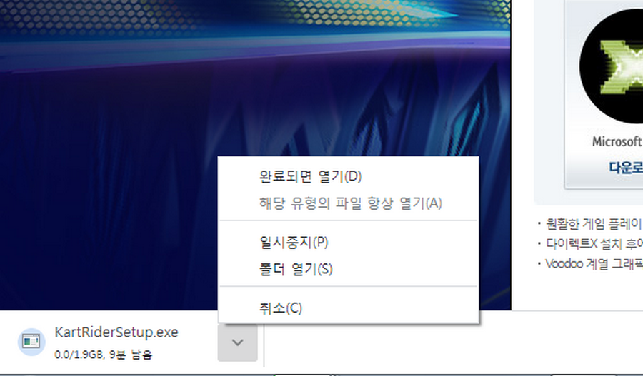 직접 카트라이더 다운로드를 진행해보면 알수 있겠지만 파일 용량은 1.9기가바이트로 생각보다는 사이즈가 크답니다. 파일이 다 받아지면 그다음에 이를 실행해서 설치하시고 로그인만 해주시면 쉽게 플레이를 할수 있습니다.