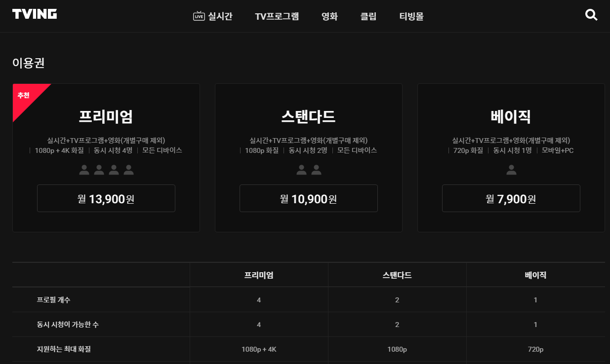 구매를 해야겠다고 생각하시는 분들은 cj one 통합가입을 진행하시거나 SNS계정으로 가입을 진행할수 있습니다. 이후에 이용권을 구매하셔야 하는데요. 동시 로그인 갯수에 따라서 금액부분은 당연히 차이가 있습니다. 이부분은 고민해보셔야 겠죠.