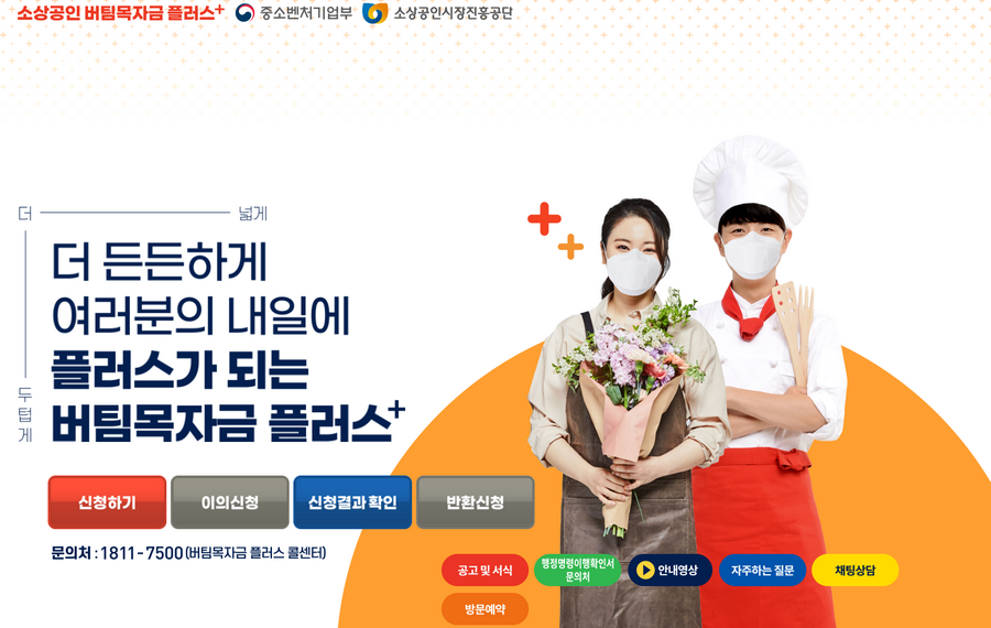 소상공인 버팀목자금 플러스 소개, 신청하기, 신청결과 확인 등