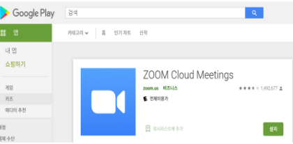 스마트폰도 마찬가입니다. 보통 양대산맥으로 일컷는 안드로이드 OS와 macOS가 있는데요. 전자인 AOS에서는 구글 플레이 스토어에서 받을수 있습니다. 영문으로 zoom cloud meetings을 검색해도 되고 줌만 쳐도 나올꺼에요.