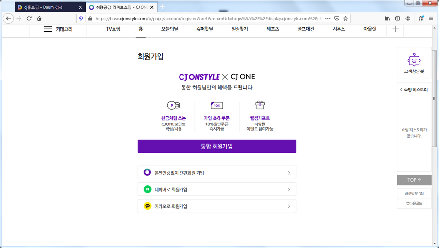 신규 회원 가입시에는 가입 축하 기념 쿠폰 10%짜리를 발급받을수 있으니 아직 없다면 가입후 이용해보시면 좋겠죠. 본인인증이 있는데 네이버나 카카오아이디로 회원가입도 가능합니다. 비회원의 경우에는 주문배송조회정도만 할수 있습니다.