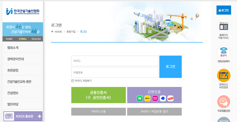 이것을 할수 있는 곳이 한국 건설기술인협회라는 곳인데요. 여기서 경력을 신고하거나 조회를 할수 있습니다. 추가적으로 다른 쪽에 확인이나 제출해야하는 경력확인서와 같은 증명을 발급 받을수도 있습니다.