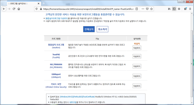 이를 설치하지 않는 경우에는 정상적인 로그인이 안되기 때문에 안내되는 내용을 확인하시고 필요한 설치파일을 다운로드 받아서 인스톨을 진행하시고 협회 사이트를 쓰시면 되겠습니다.
